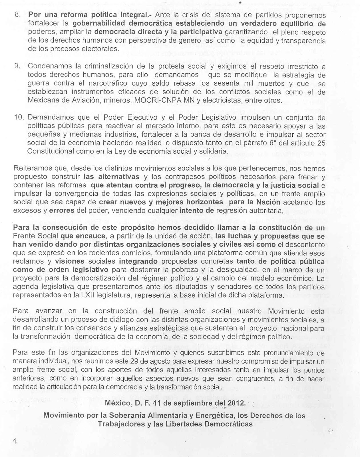 Como parte de las actividades del Plan de Acción 2012, el 18 de septiembre en la parte norte de la Torre de Rectoría, se realizó un mitin el cual se caracterizó por demandas concretas tanto de los oradores como de los trabajadores por no a la Reforma a la Ley Federal de Trabajo y una Revisión Contractual justa.